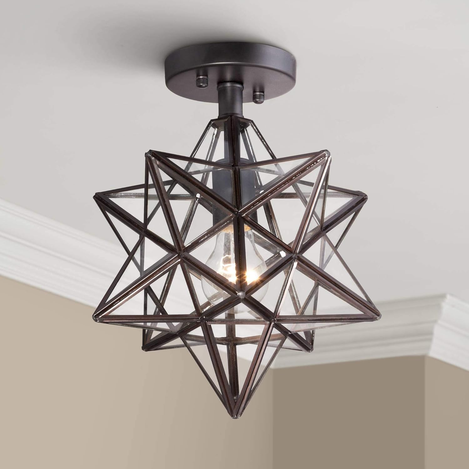 Seeded glass brass moravian star flush mount ceiling light. Find lighting you love at hayneedle, where you can buy online while you explore our room designs and curated looks for tips, ideas & inspiration to help you along the way. Shop our semi flush mount lighting selection from top sellers and makers around the world. It's a very stylish fixture that shipped quickly, was. It has a simple metal frame in your choice of finish that encases a fabric shade.
